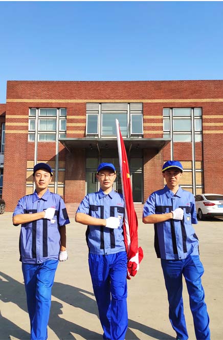 在嘹亮激昂的國歌聲中,鮮艷的五星紅旗迎著朝陽冉冉升起,現(xiàn)場全體人員行注目禮,高唱國歌,共同祝愿我們的祖國繁榮富強。