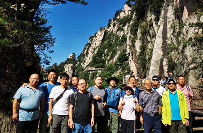 活動(dòng)第四天游覽當(dāng)?shù)刈钣忻木皡^(qū)——老君山。老君山位于洛陽(yáng)欒川縣城東,古稱景室山。相傳道教始祖老子歸隱修煉于此得名。今天我們管理層的所有人員一起登到了老君山的頂峰-金頂,領(lǐng)略了老君山滑脫峰林舉世無(wú)雙!”的景象。
