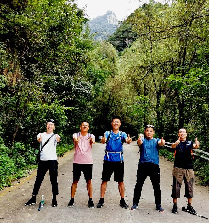 因?yàn)橹皫滋觳皇呛苡袕?qiáng)度,有的同事感覺(jué)意猶未盡,希望能挑戰(zhàn)一下自己,所以領(lǐng)導(dǎo)今天把人員分成了兩組,一組游覽追夢(mèng)谷,另外一組從追夢(mèng)谷往上爬,途徑天瀑、十里畫(huà)廊、伏牛山最高峰、南天門(mén)、金頂、中天門(mén)等著名風(fēng)景名勝,歷時(shí)8個(gè)多小時(shí),爬升1500多米,行程27公里,步行4萬(wàn)多步,終于順利完成對(duì)5A級(jí)風(fēng)景名勝老君山的穿越。雖然身體略感疲憊,但大家都心情愉悅,此次活動(dòng)不但陶冶了情操,還鍛煉了意志。